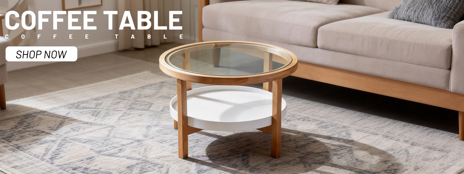 Round Glass Top Coffee Table with Shelf